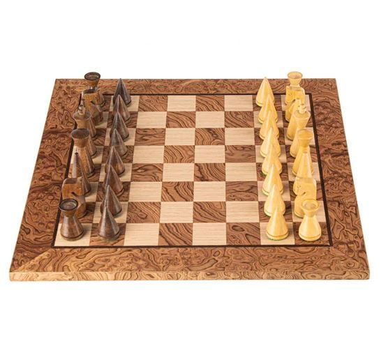 Walnut Burl Chess set 40x40cm with Modern Style Chessmen Manopoulos
