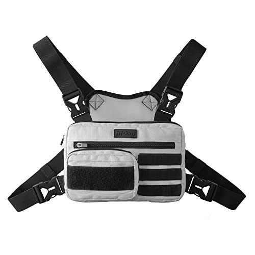 Fitdom Tactical Inspired Sports Utility Chest Pack. Chest Bag For Men With Built-In Phone Holder. This EDC Rig Pouch Vest is Perfect For Workouts, Cycling & Hiking (Rig Fit, White)