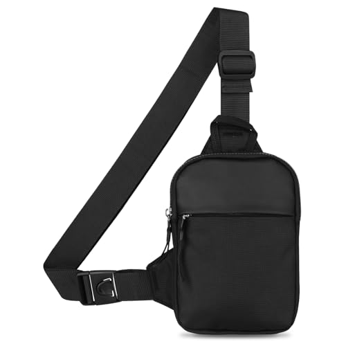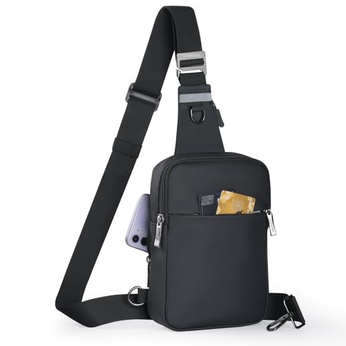BROADREAM Sling Chest Crossbody Bag, vattentät axelväska bröstficka axelväska män kvinnor – mobilväska med RFID-blockerande blixtlåsficka, lämplig för utomhussporter och vandring, B-Svart, S, Retro