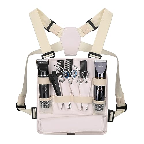 Muserise Leather Fashionable & Functional Chest Rig Bag for Barbers, Stylish Haircut Tools Storage Chest Bag for Barber (Cream)