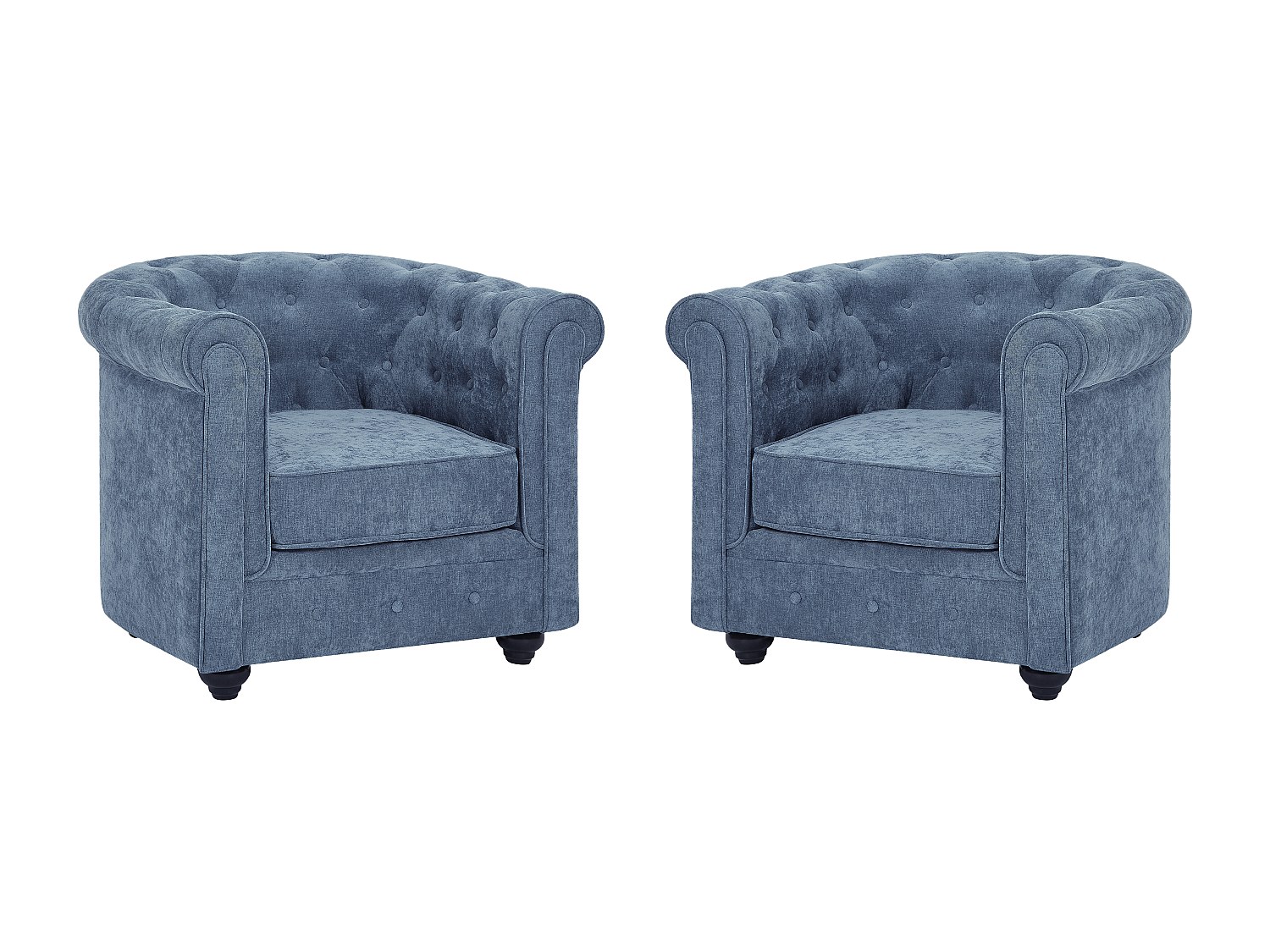 Set med 2 Chesterfield blå tygfåtöljer