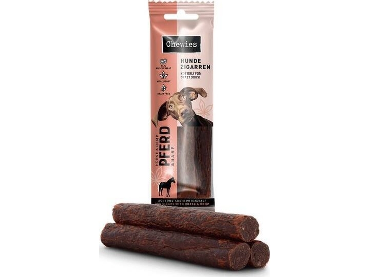 Chewies Hundcigarr häst med hampa – Protein tuggpinnar för din hund spannmålsfri och sockerfri hundgodis, även lämplig för valpar och senior hundar, förpackning om 10 (75 g vardera)