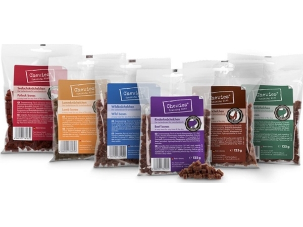 Chewies Training mini snacks hundgodis provpaket – hälsosamt hundgodis utan socker, perfekt som belöning och motivation vid hundträning, tillverkad i Tyskland (12 x 125 g)