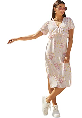 Chi Chi London Kortärmad blommig tryckt midiklänning för kvinnor i rosa cocktail, 10, Rosa, 36 SE