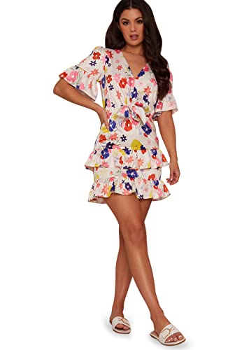 Chi Chi London Dam blommigt tryck slips framsida miniklänning med volanger cocktail, mång, 36 SE