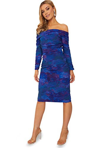Chi Chi London långärmad blommig rynkad figurnära midi-klänning för kvinnor cocktail, BLÅ, 38 SE