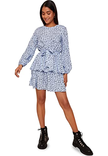 Chi Chi London Långärmad miniklänning för kvinnor med prickar i blå cocktail, BLÅ, 38 SE