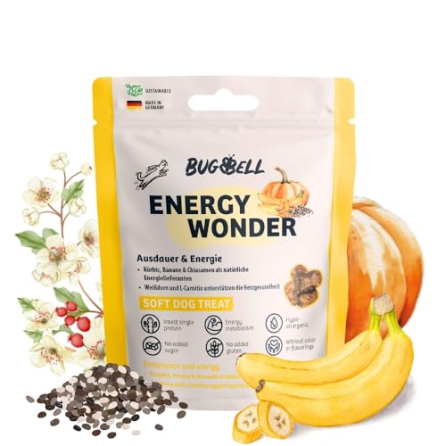 BugBell spannmålsfritt hundgodis med funktion 60 g, High Energy Snack, för ett aktivt hundliv, insektprotein, banan, pumpa, chiafrön, L-karnitin