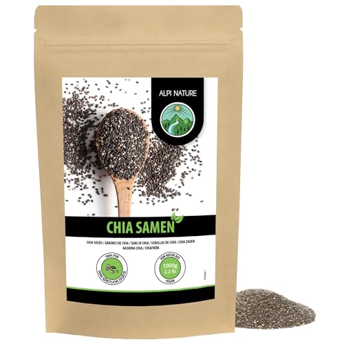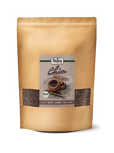 RheinNatur Bio Chia frön 1 kg – 100 % ekologiska chiafrön – rik på proteiner, fiber & omega-3 fettsyror – Perfekt för sallader, yoghurt, müsli och chiavatten – 1000 g påse