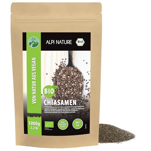 Alpi Nature EKOLOGISKA Chiafrön svarta (1kg), chiafrön ekologiska, skonsamt torkade, från kontrollerad ekologisk odling, laboratorietestade, vegan, chia 100 procent naturlig utan tillsatser
