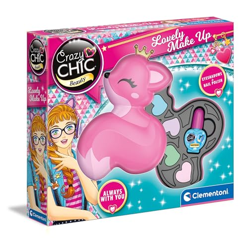 Clementoni - Crazy Chic-Lovely Make Up: Fox-Trousse, Säkra Och Allergivänliga Smink, Kosmetiska Set För Flickor 6 År, Emalj Och Ögonskugga, Lätt Tvättbar Med Vatten, Multifärg, 18795