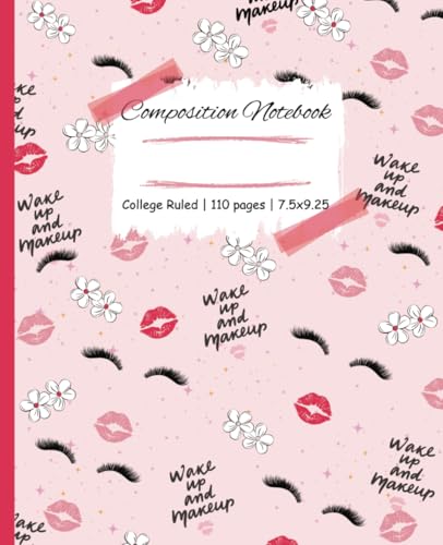 Composition Notebook: Wake Up & Makeup Chic & Stylish College Ruled Journal | 110 pages | 7.5x9.25 for teens, adults, make up artists