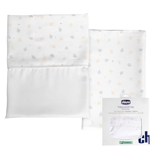 Chicco Bambufiberlakansset, 1 övre platta, 1 ark med hörn, 1 örngott kompatibelt med madrasser 58 x 110 cm, kompatibel med spjälsäng Next2Me Forever, Fantasy med broschyrer