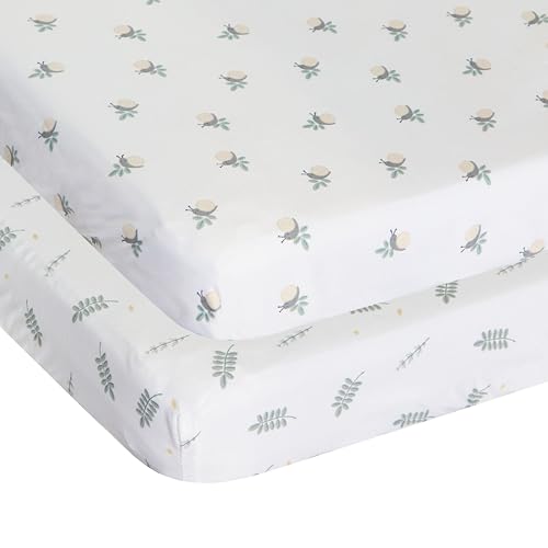 Chicco Bambufiberlakansset, 1 topplatta och 1 ark med hörn, kompatibelt med madrasser 58 x 110 cm, kompatibel med Next2Me för evigt vagga, löv och sniglar
