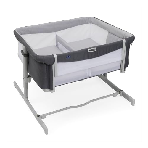 Chicco Next2Me Twins, Barnsängsäng för manschettknappar, 2 madrasser, axel som kan öppnas med en hand, 11 höjdnivåer, partitionsstång med nätinsatser, tvillingsäng, 0-6 månader