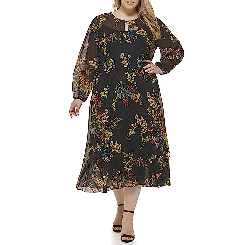 Calvin Klein Dam plusstorlek solid mantel med chiffong klockärmar klänning, Blomma, 36 SE