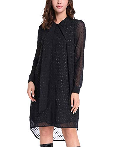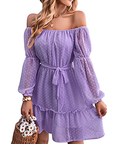 BebreezChic damklänning sommar axellös långärmad för kvinnor UK lös chiffong kort klänning fyrkantig hals polkaprickig klänning ledig, Lila, S
