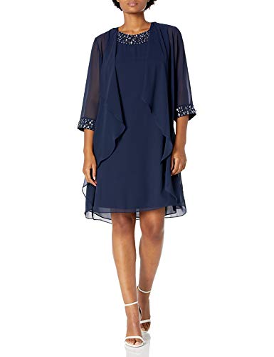 S.L. Fashions Dam chiffong djurjacka klänning med strandhals och manschetter, Mörk marinblå, 46