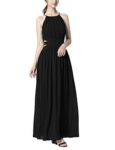 Maya Deluxe dam dam maxi dam ärmlös V-hals paljett Embellished blommig ruffle chiffong A-linje öppen rygg slips bal balklänning klänning, svart, 36