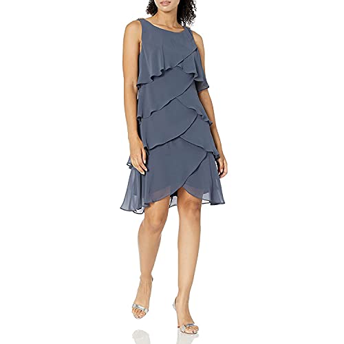 S.L. Fashions Ärmlös chiffong ärmlös cocktailklänning, liten och missy klänning för speciella tillfällen dam, Stål, 48