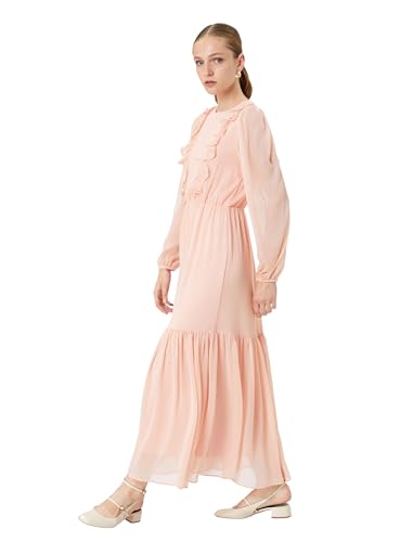 Koton dam crew neck ruffle puff ärm chiffong lång klänning, Rosa (280), 38