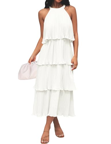 ZESICA Dam 2023 sommar ärmlös halterneck volang lager chiffong blommig gunga lång midi-klänning, Vit, 36