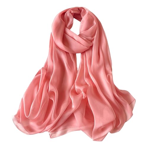 Lina & Lily skrynklig chiffong damhalsduk sjal vår sommar ren silkeslen fjäderlätt, Korall, 72 cm x 185 cm