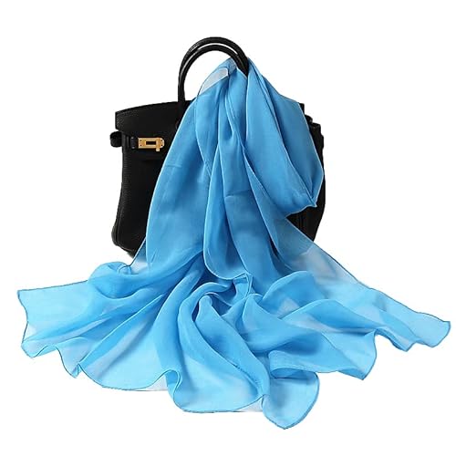 Silkeshalsduk kvinnor sjal gul halsduk fläckhalsduk huvudsjal tunn halsduk damer strandsjal vintage brud chiffong halsduk muslimsk färgglad duk juldekorationer halsduk bälte, Magnolia blå, 180 x 90 cm