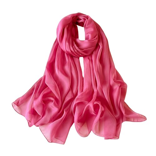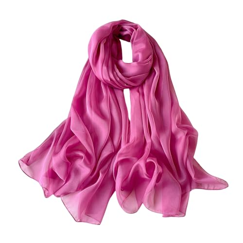 Lina & Lily skrynklig chiffong damhalsduk sjal vår sommar ren silkeslen fjäderlätt, Mörkrosa, en storlek