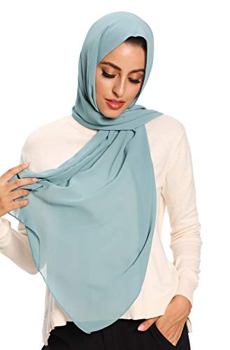Txameru hijab för kvinnor chiffong hijab halsdukar för kvinnor lång sjal, Dammig grön, L