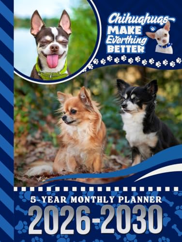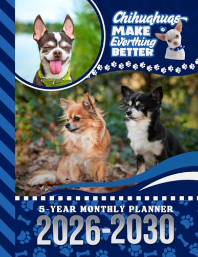 5-Year Monthly Planner 2026-2030: Dated Large / 60 Month Agenda / With Notes Pages - To Do List / Chihuahua Dog Art Cover Design
