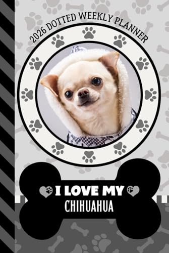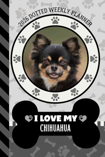 2026 Dotted Weekly Planner: Hardcover / Dated 6x9 Vertical Weekday Layout With Dot Grid Note Pages / Habit Tracker / Jan - Dec / Small Personal Diary / I Love My Black Brown Chihuahua Dog Art Cover