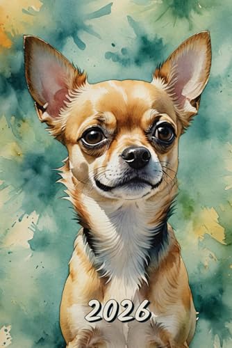 2026: Large Monthly Calendar Planner – Watercolor Chihuahua Dog