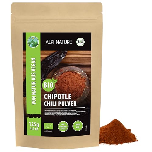 Ekologiskt chipotle chilipulver (125 g), ekologiskt chipotlepulver, chipotle chilimalt från kontrollerad biologisk odling, chilipulver 100 % rent och naturligt