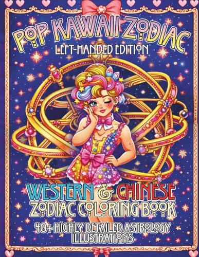 Pop Kawaii Zodiac Left-Handed Edition: Western & Chinese Zodiac Coloring Book 40+ Highly Detailed Astrology Illustrations