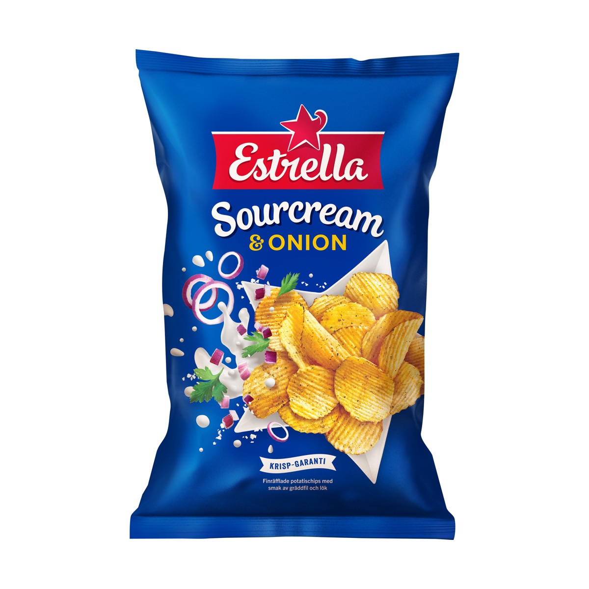 Chips Estrella Sourcream & Onion Portionspåsar, 27x40g