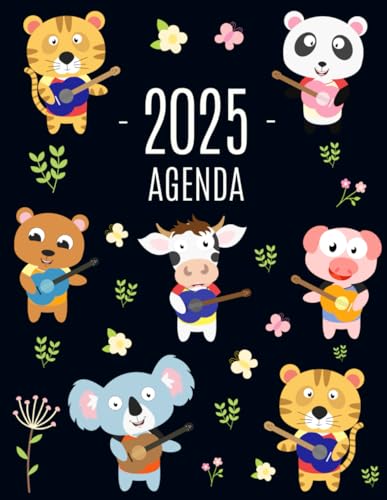 Animali con la Chitarra Agenda 2025: Diario Settimanale per Organizzare Giorni Occupati | Pianificatore Giornaliera 2025 con Panda, Mucca, Tigre e Koala