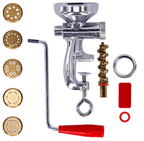 Tagliapasta.com Pastapress | Pastatillverkningsmaskin för färsk pasta | med säker ring i rostfritt stål och 5 mässingsplattor för spaghetti, maccheroni, bucatini, caserecce och chitarra | Tillverkad i
