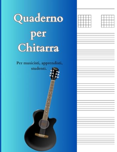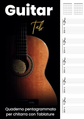 Guitar Tab - Quaderno pentagrammato per chitarra con tablature: 5 pentagrammi e 5 tab con 7 griglie per gli per gli accordi per pagina. Formato A4