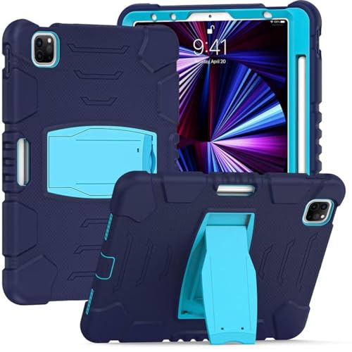 iPad Pro 12,9 2021 med stöd, hållbar, hybrid, chockerande, resistent, silikonskydd för tre bord för barn (Aciano Blue)