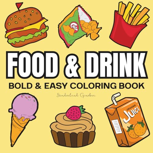 Food & Drink: Coloring Book For Adults And Kids, Featuring Pizza, Dessert, Cupcake, Sausage, Donut, Candy, Chocolate, Chips, Drink and More (Bold & Easy Coloring)