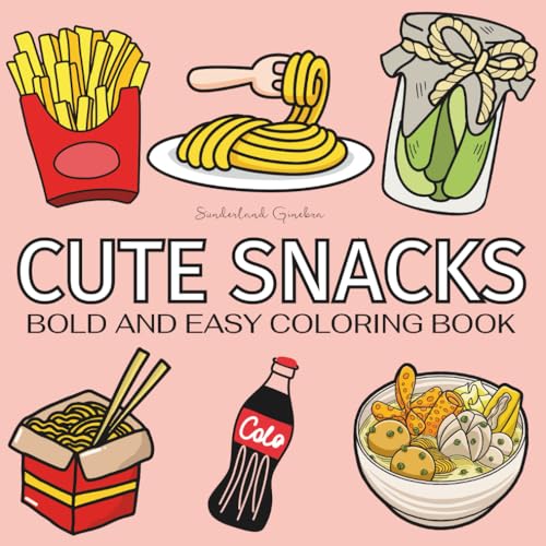 Cute Snacks: Coloring Book For Adults And Kids, Featuring Pizza, Dessert, Cupcake, Sausage, Donut, Candy, Chocolate, Chips, Drink and More (Bold & Easy Coloring)