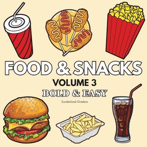 Food & Snacks Volume 3: Coloring Book For Adults And Kids, Featuring Pizza, Dessert, Cupcake, Sausage, Donut, Candy, Chocolate, Chips, Drink and More (Bold & Easy Coloring)