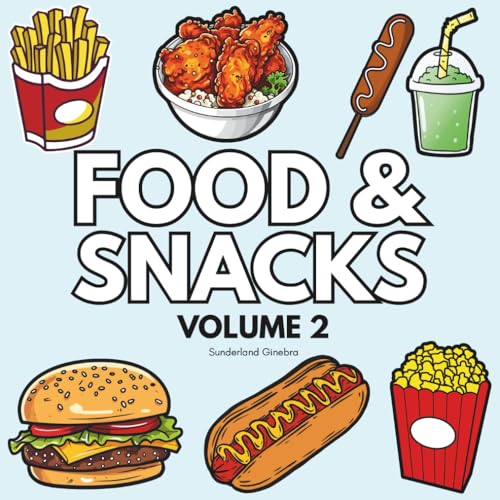 Food & Snacks Volume 2: Coloring Book For Adults And Kids, Featuring Pizza, Dessert, Cupcake, Sausage, Donut, Candy, Chocolate, Chips, Drink and More (Bold & Easy Coloring)