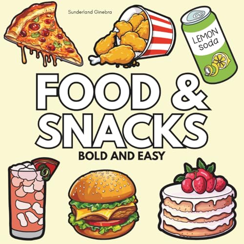Food & Snacks: Coloring Book For Adults And Kids, Featuring Pizza, Dessert, Cupcake, Sausage, Donut, Candy, Chocolate, Chips, Drink and More (Bold & Easy Coloring)
