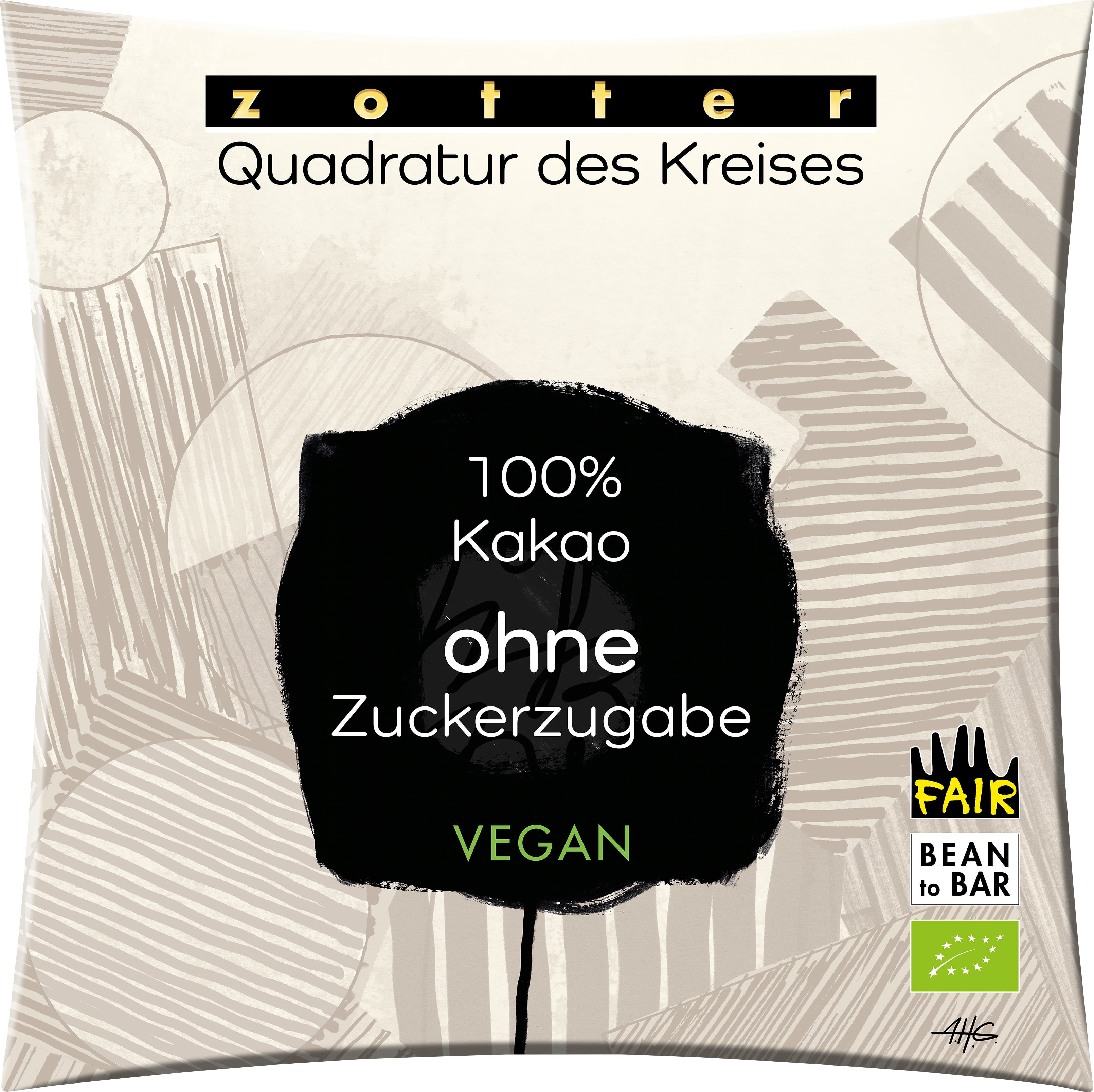 Zotter Schokoladen Quadrature of the Circle 100 % Mörk Choklad utan Socker Ekologisk - 70 g