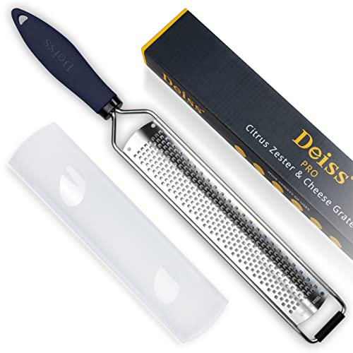 Deiss PRO Citronzester & Ostrivjärn - Parmesan Ost Citron, Ingefära, Vitlök rivjärn, Muskotrivjärn, Choklad, Grönsaker, Frukt - Rakbladsvasst rivjärn av rostfritt stål, Bred, Diskmaskinssäker (BLACK)