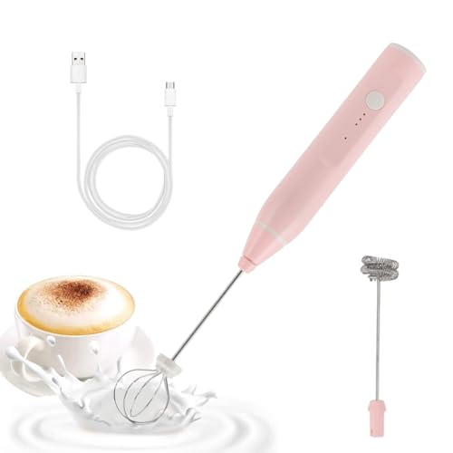 Mjölkskummare Handhållen, Mini Uppladdningsbar Mjölkskummare Handhållen med 2 äggvisparhuvuden Kaffe Elvisp Dryckskummixer för Latte Cappuccino Varm Chokladägg (Rosa)