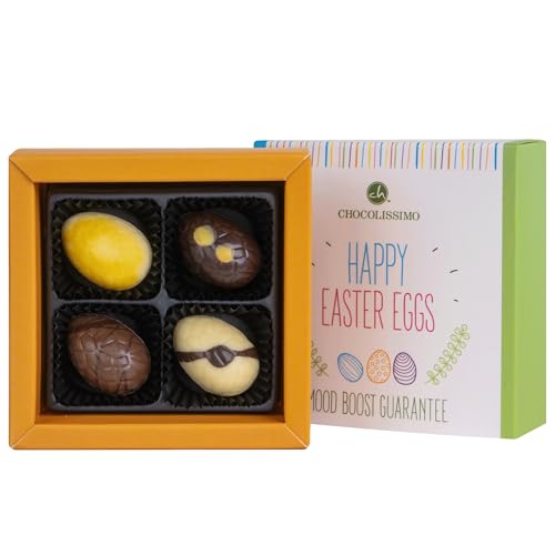 Happy Easter 4 Eggs - 4 fyllda chokladpåskägg | påskpresent | choklad till påsk | Chokladägg | Påskpresent för vuxna | Påskpresent | Kvinna | man