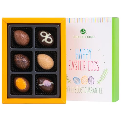 Happy Easter 6 Eggs - 6 fyllda chokladpåskägg | Påskgåva | Choklad till påsk | Chokladägg | Påskgåva för vuxna | Kvinnor | Män